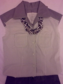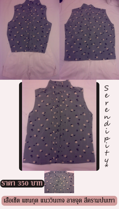 3.เสื้อแขนกุดคอปกสีเขียวขาวเทา