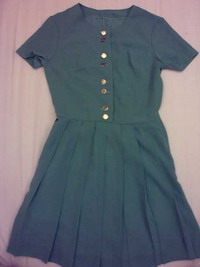 1.เดรสวินเทจสีเขียวกระดุมทอง
