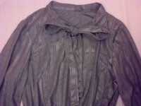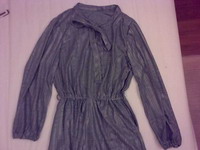 2.เดรสเก๋ๆแขนยาวสีเทามีผูกโบว์จั๊มเอว และข้อมือ