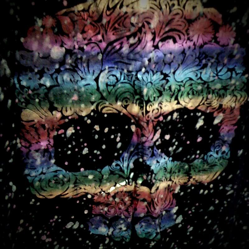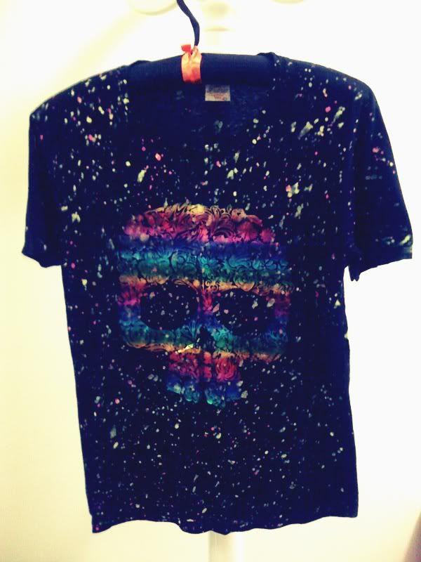 เสื้อยืดสีดำ กะโหลกสีรุ้ง เก๋มากเวลาโดนแสงไฟ หรืออยู่ที่มืดค่ะ