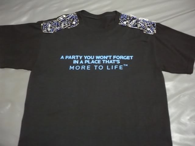 ตัวที่สองเป็นเสื้อยืดปักหมุดเช่นกันจ้า บริเวณหัวไหล่ จะตกแต่งด้วยเข็มกลัด ลูกปัด ต่างๆจ้า จำราคาที่ซื้อมาไม่ได้ แต่เกิน 500 บาทแน่ๆ แต่ขอขายแค่ 350 บาทจ้า (ไม่รวมค่าส่ง)