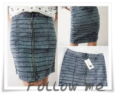 กระโปรงยีนส์บอดี้คอน ตกแต่งซิบด้านหน้ายาว ผ้ายีนส์ยึดอย่างดีเลยค่ะ งานแบรนด์จากฮ่องกง รับรองว่าสวยมากๆเลยค่ะตัวนี้